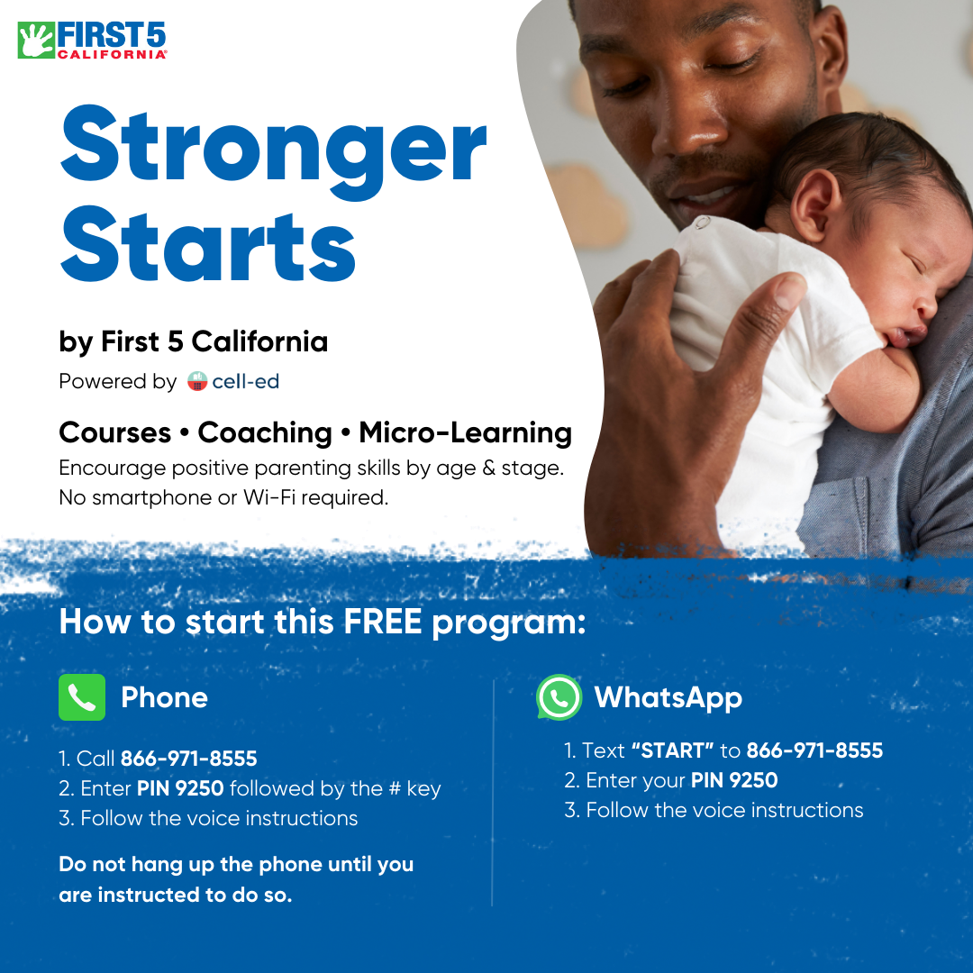 - Aligned with First 5 California’s Stronger Starts Campaign